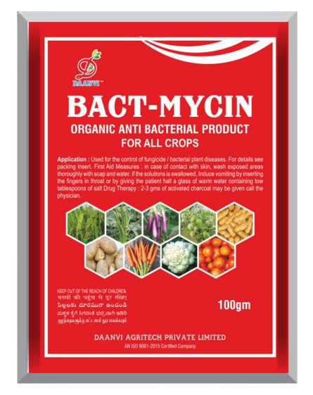 Bact-Mycin is a natural product that develops immunity and enhances resistance power in plants. It acts as a natural antibiotic and can be safely mixed with all foliar inputs to protect crops from diseases and improve overall plant health.